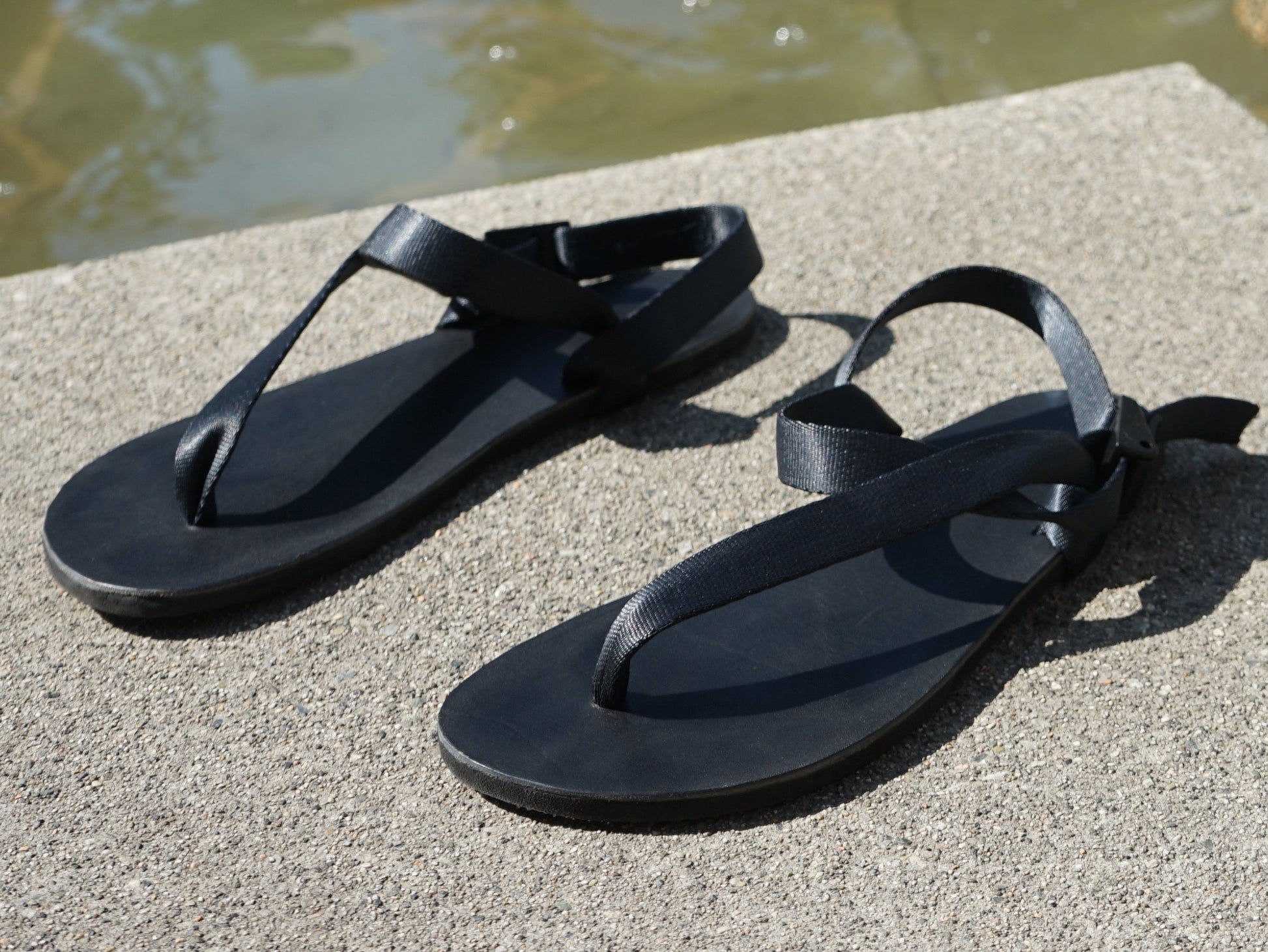 Footwear with raised or cushioned heels can put your spine out of alignment causing unnatural heel strike. Our sandals are completely flat (zero drop) and thin. This helps promote neutral posture and natural movement. The thin sole lets you feel the earth more, experience greater sensory feedback and be more grounded!